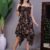 Effortlessly stylish dress with a vibrant abstract print, tie-up shoulder straps, and a chic high-low handkerchief hemline ? perfect for casual days or evening gatherings.